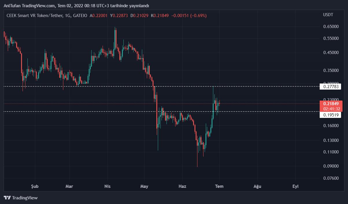Haberimizin yazıldığı esnada 0.2184 dolar seviyelerinden işlem gören CEEK, son günlerde sert bir şekilde yükselmeyi başardı.