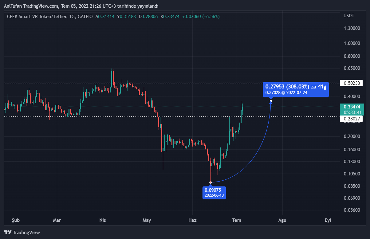 13 Haziran tarihinden bu yana yüzde 300’den fazla değer kazanan popüler metaverse projesi ilerleyen günlerde 0.28 dolar destek seviyesine bir düzeltme gerçekleştirebilir.