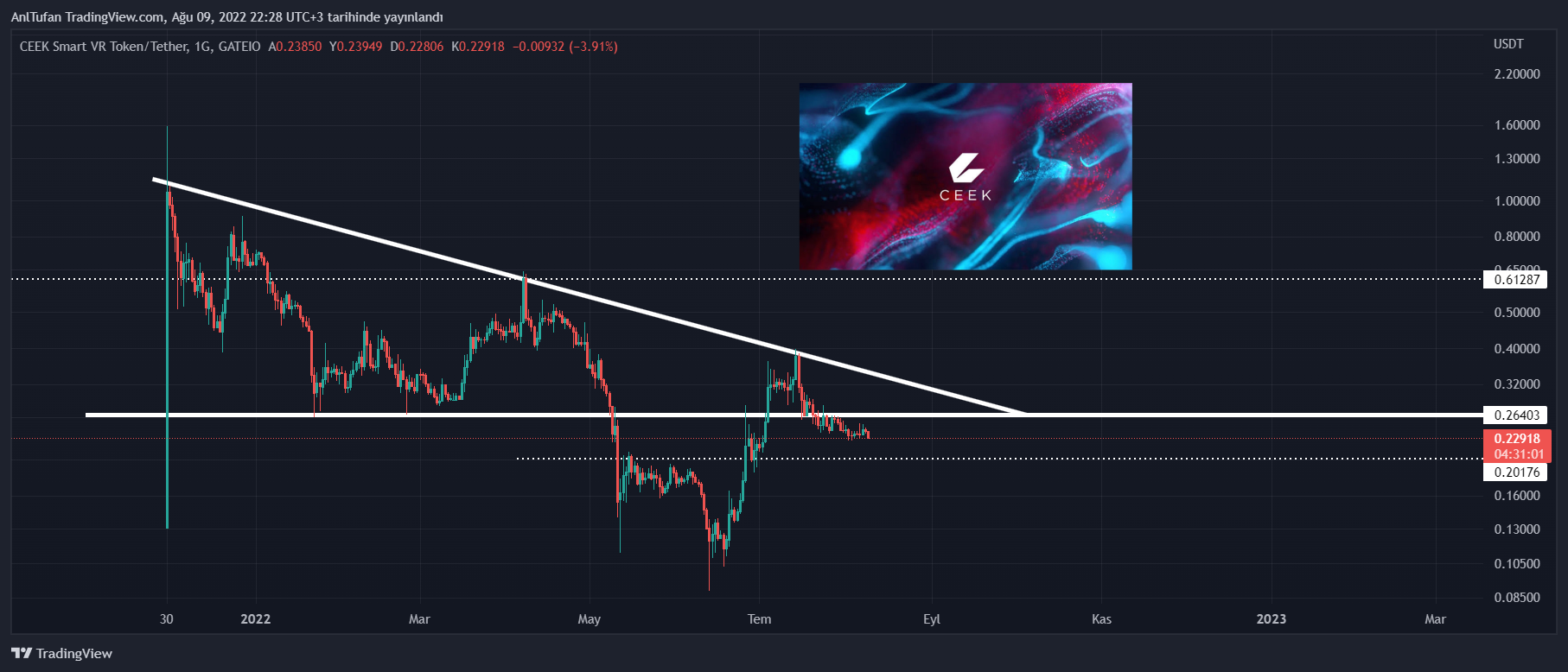 İlerleyen günlerde Bitcoin‘in kritik dirençleri aşmasının ardından 0.26 doları kıracağı tahmin edilen CEEK, bu direnç seviyesini aşamaması halinde ise 0.20 dolar destek seviyesine kadar gerileyebilir.