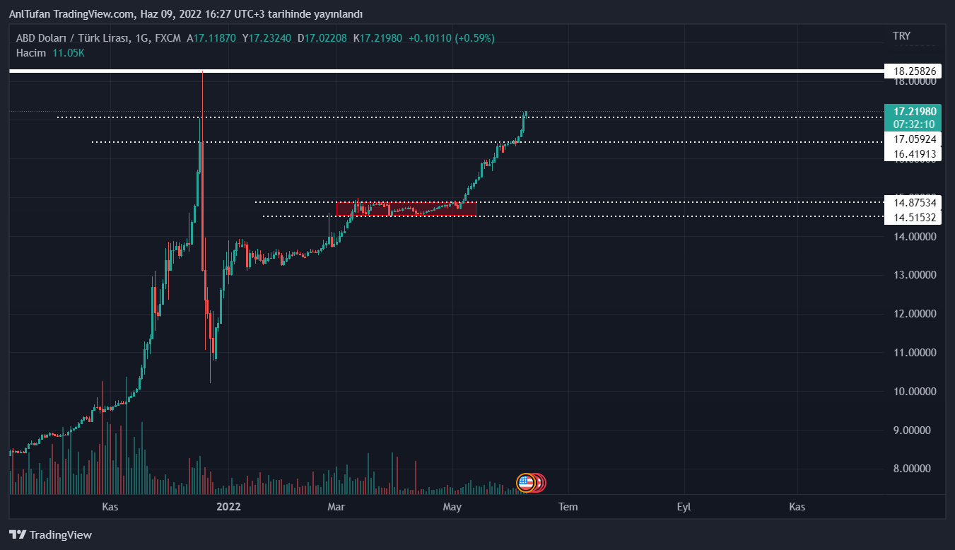 İlerleyen süreçte ABD dolarının yükselişlerine devam etmesi için 17 Türk lirası seviyesinin altına sarkmaması gerekmekte. Bu destek noktasının kırılmaması, ABD dolarının 20 Türk lirası psikolojik seviyesine taşıması beklenebilir.