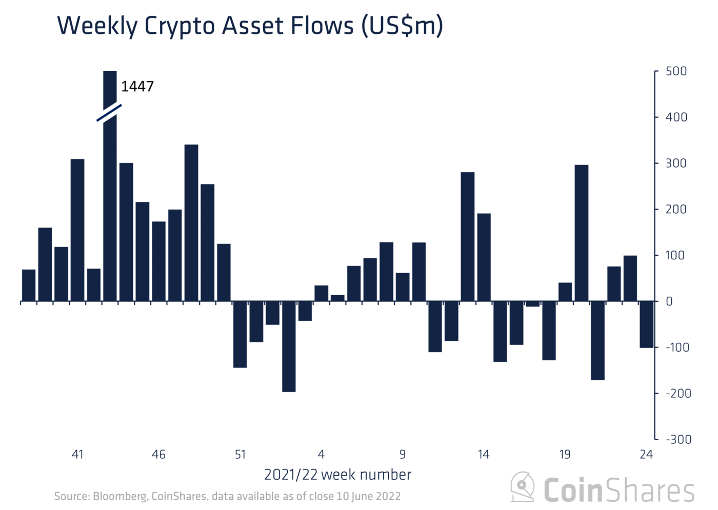 CoinShares’in paylaştığı verilere göre, geçen haftaya göre kripto piyasasında 102 milyon dolarlık bir fon çıkışı gözlemlendi.