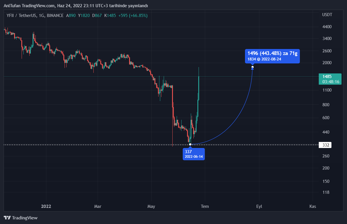 324 dolar seviyelerinden destek almayı başaran YFII, bir akümülasyon sürecinin ardından devasa bir yükseliş yaşaması yatırımcıların dikkatini çekti.