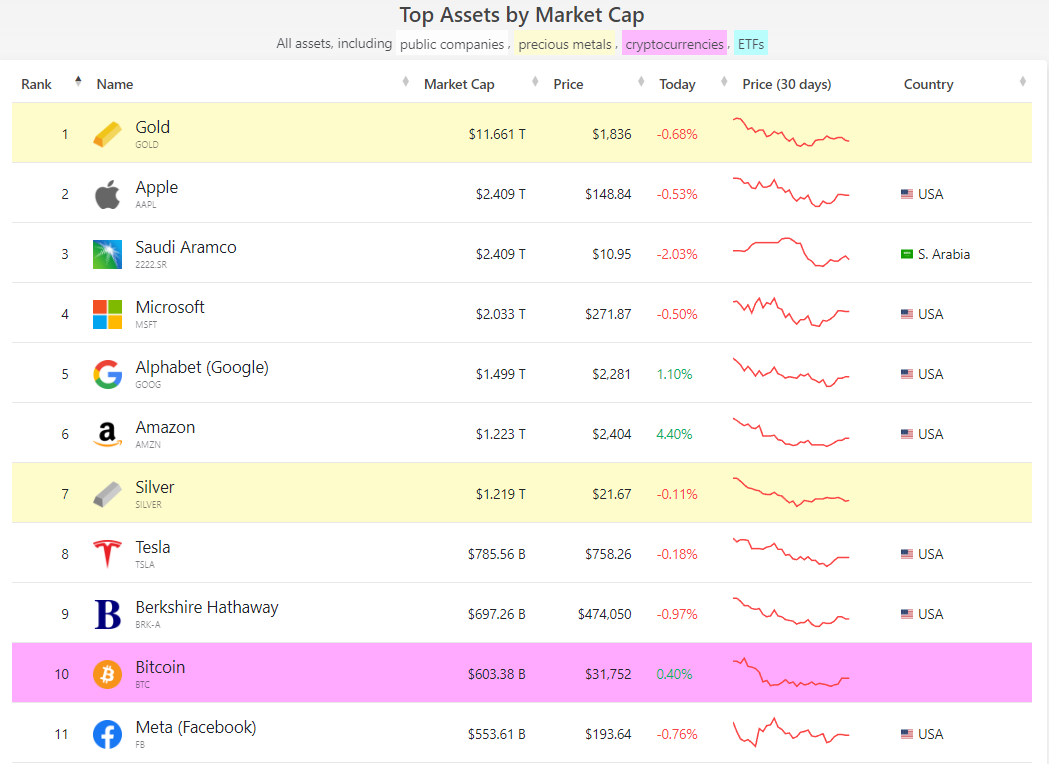 Listenin başında altın bulunuyor olsa hemen ardından Apple ve Saudi Aramco yer almakta. Listede ise birçok teknoloji şirketinin bulunması, geleceğin bu ürünlerde olduğunu kanıtlar cinsten.