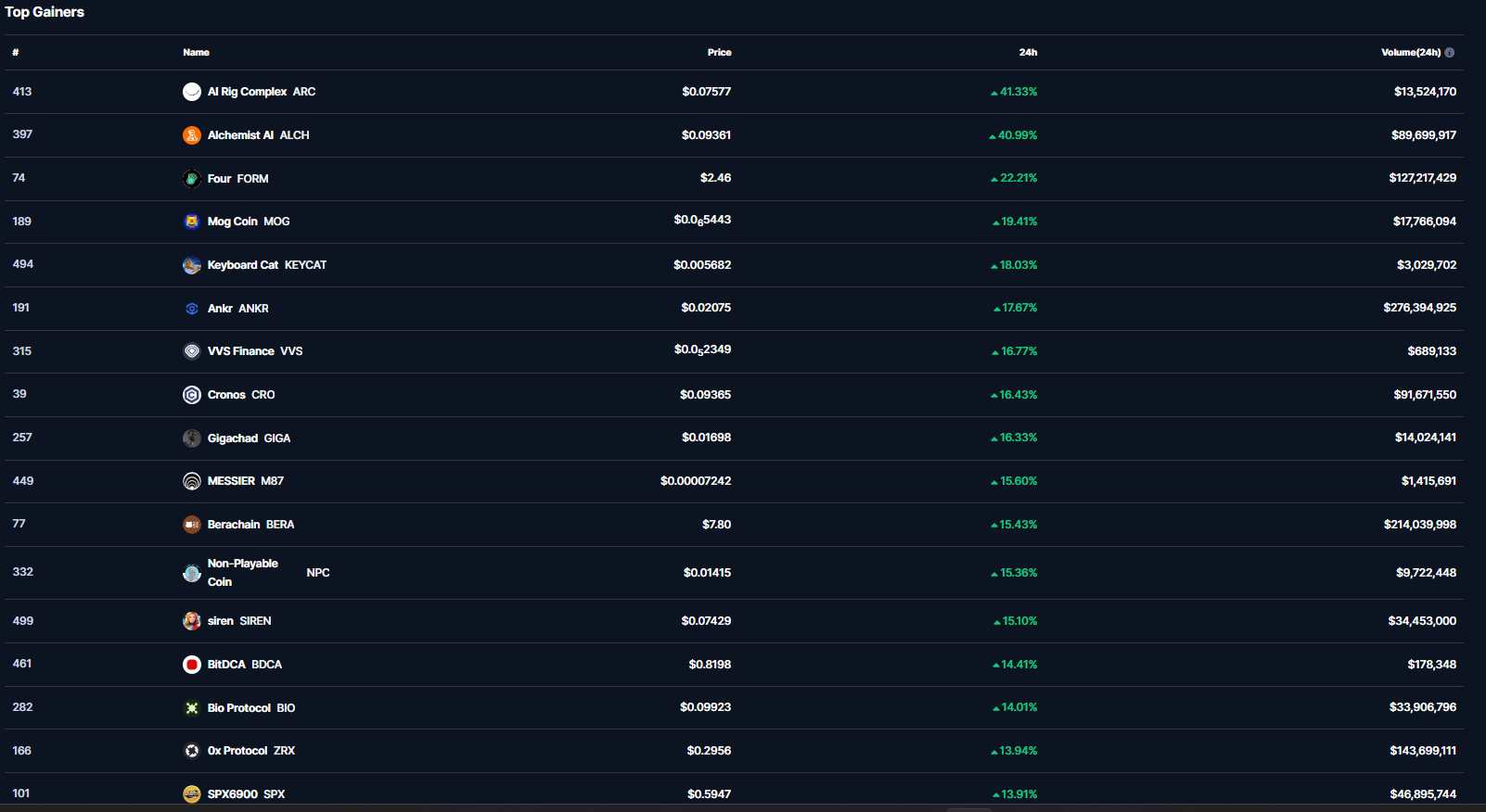 ARC’nin yanı sıra ALCH, FORM, MOG, KEYCAT, ANKR ve VVS‘nin de kayda değer yükselişler yaşadığı gözlemlendi.