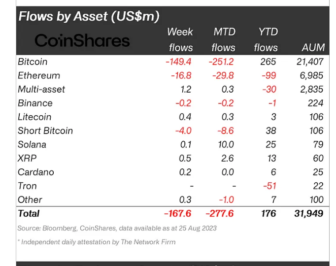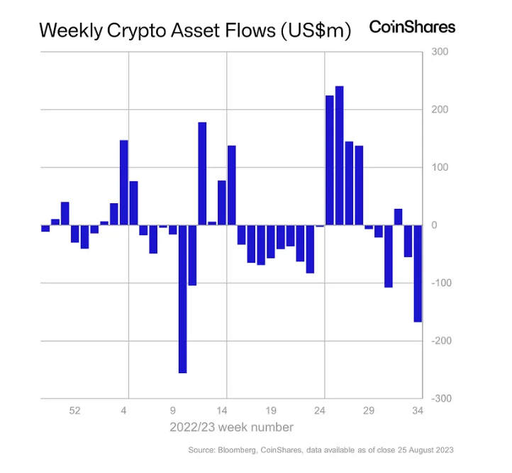 Başarılı bir veri sağlayıcısı olan CoinShares‘in paylaştığı bilgilere göre geçtiğimiz hafta toplamda kripto fonlarından 167.6 milyon dolar değerinde fon çıkışı gerçekleşti.