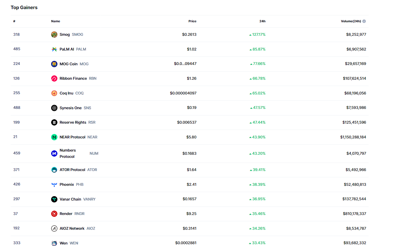 Başarılı bir veri sağlayıcısı olan CoinMarketCap’in verilerine göre bugünün en çok kazandıran altcoin‘i Smog (SMOG) oldu. SMOG son 24 saat içerisinde %127’lik artış yaşadı.