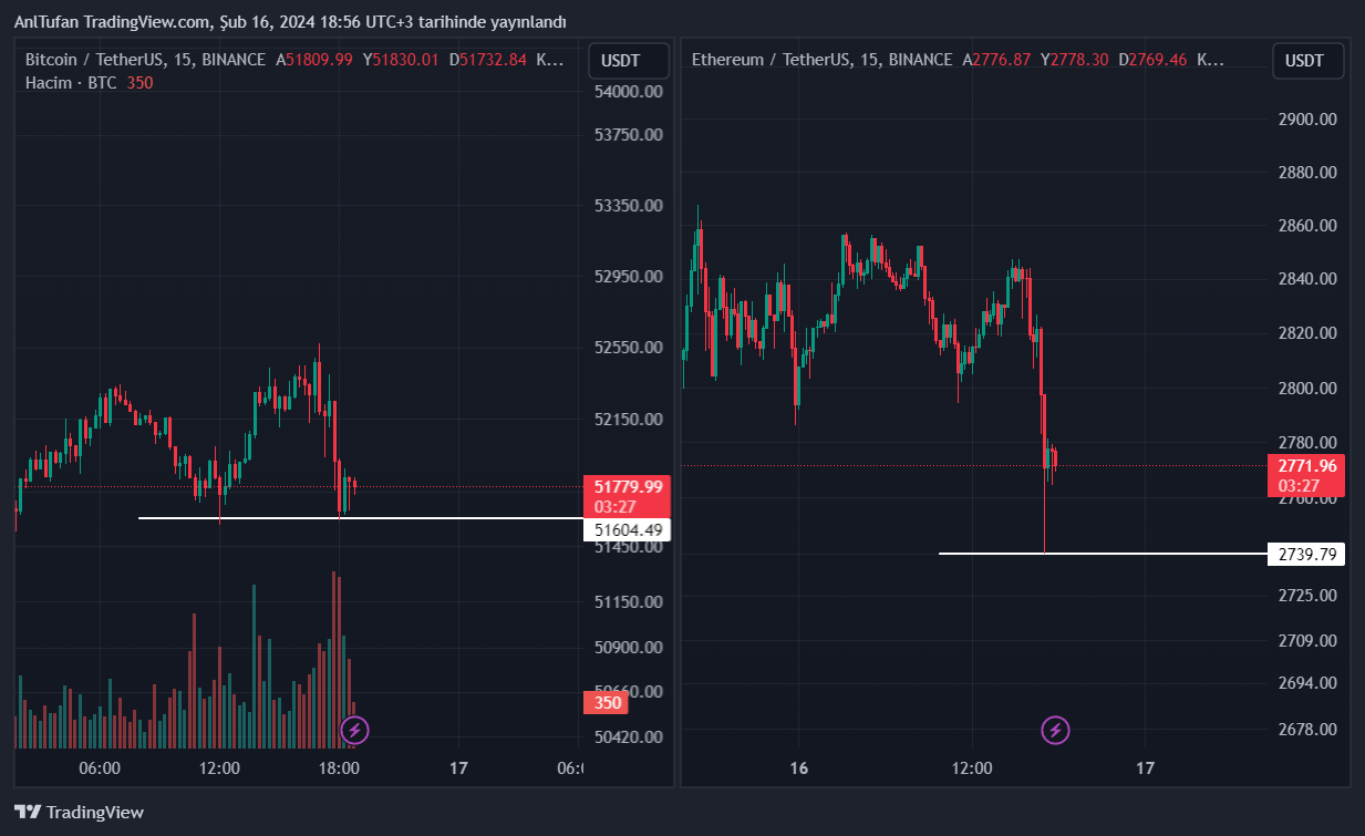 ABD üretici enflasyon verisi sonrasında düşüş yaşayan Bitcoin 51.600 dolar seviyelerine kadar gerilerken, lider altcoin Ethereum‘un (ETH) ise 2.740 dolara kadar iğne attığı gözlemlendi.