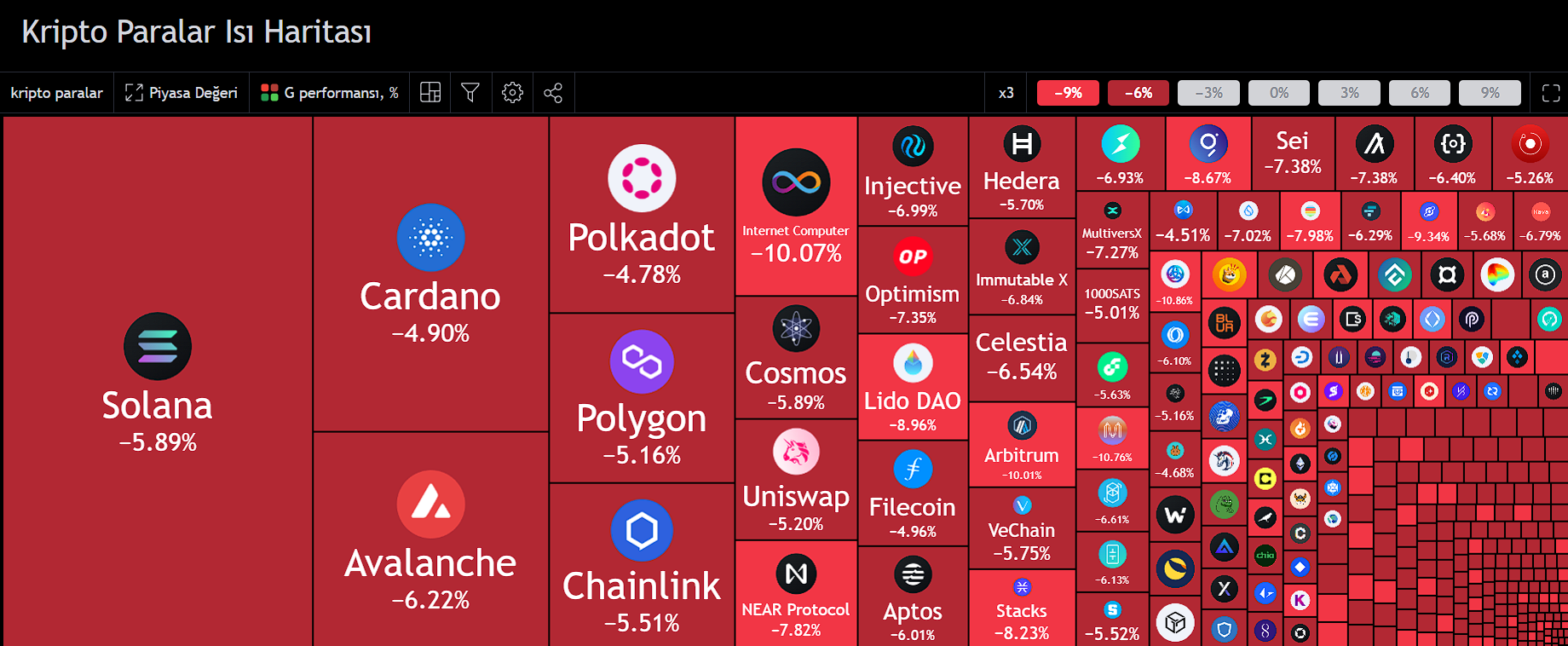 Bugün özelinde Bitcoin %2’ye yakın bir geri çekilme yaparken, altcoin‘lerdeki bu düşüşlerin ise %10’lara ulaştığı görülüyor.
