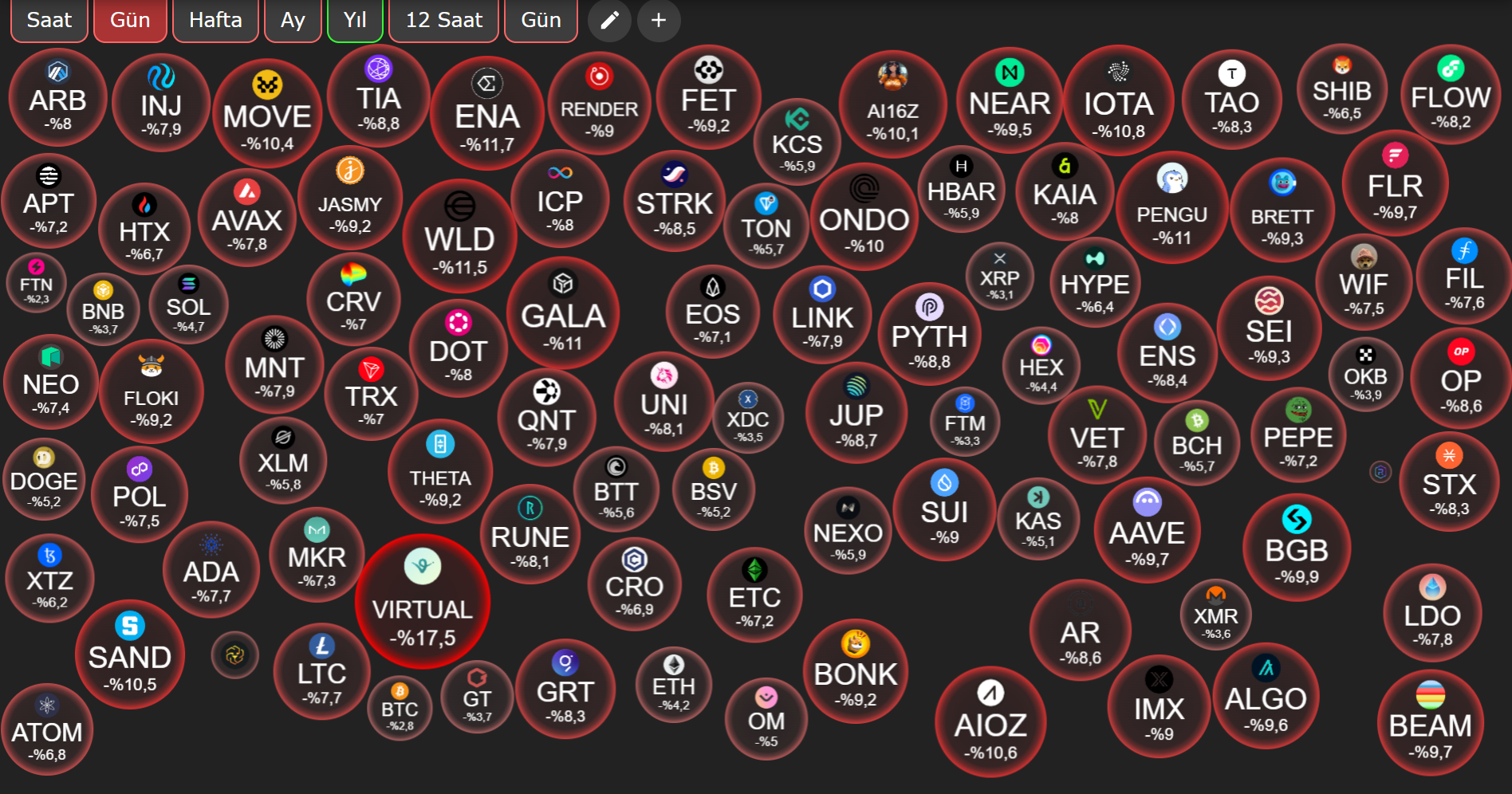Genel altcoin piyasasını incelediğimizde ise kripto varlıkların ortalama %10’luk düşüşler yaşadıkları görülüyor. Uzun bir süredir değer kaybeden altcoin’ler, yeni haftanın ilk gününde de yatırımcılarını üzdü.