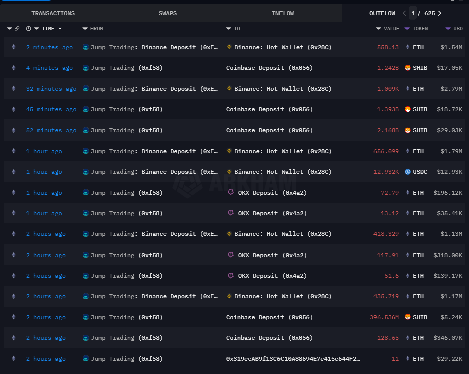 Her ne kadar son düşüşün birçok sebebi olsa da, Jump Crypto isimli kripto şirketi bu düşüşleri tetiklemiş olabilir. Jump Crypto son süreçte Binance‘e yüklü Ethereum (ETH) transferleri gerçekleştiriyor.