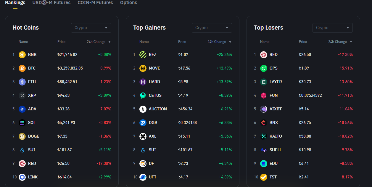 Hadi gelin Binance’deki altcoin’lerin bugünkü performanslarına birlikte göz atalım: