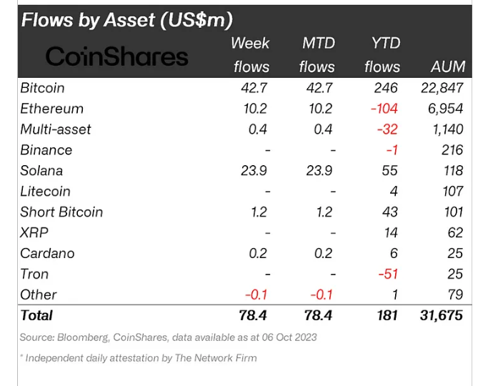 Gelen bilgilere göre dijital varlık yatırım ürünlerine geçtiğimiz hafta toplam 78 milyon ABD doları tutarında bir giriş gerçekleşti.