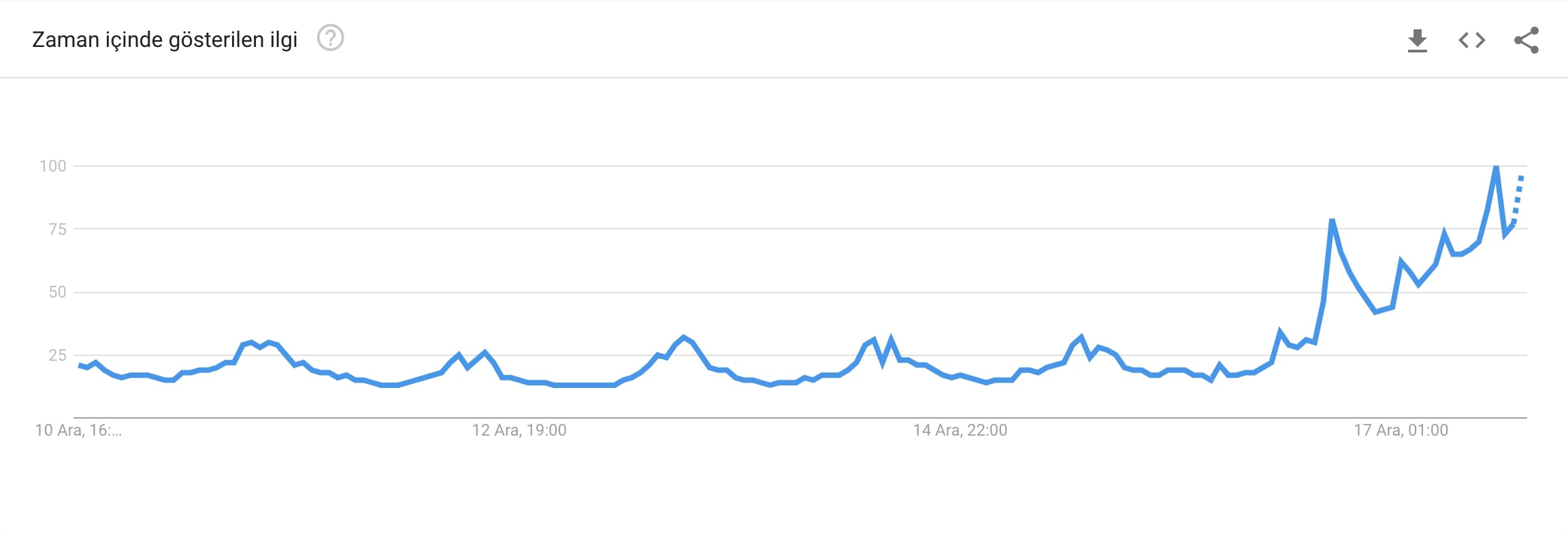 Bitcoin fiyatı rekor kırmaya devam ediyor. Ancak tek rekor kıran Bitcoin fiyatı değil. Dün 20.000 doları hızlıca geçip rekor kıran ve bugün 22.700 dolar seviyesini bile aşan Bitcoin’in aranma hacminde de büyük artış var. 2 gün öncesine oranla Google ve diğer arama motorlarında %200’ün üzerinde aranma artışı gördü.