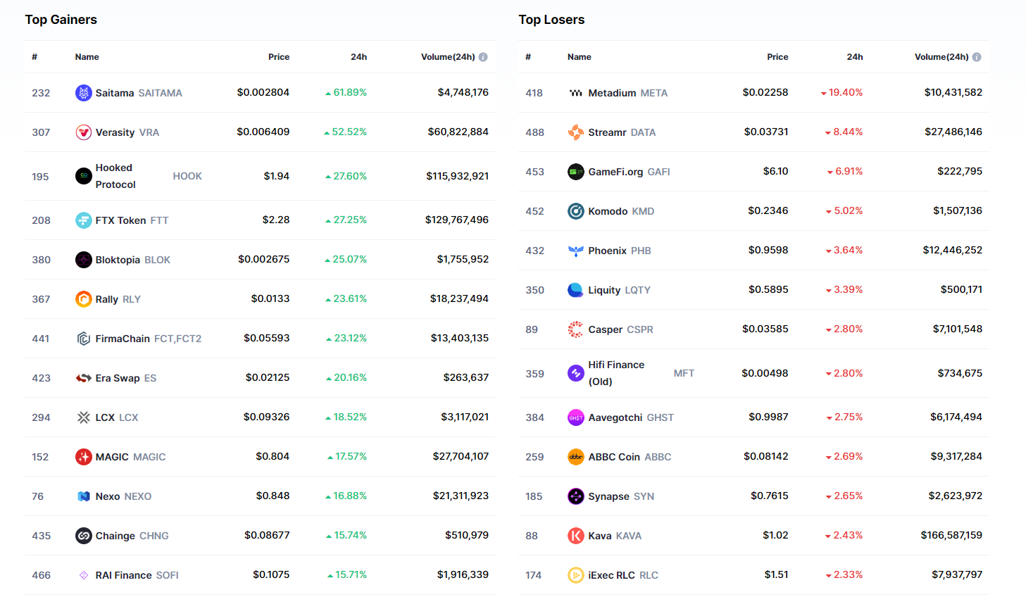 Bugünün en fazla kazandıran ürünü SAITAMA isimli altcoin olmuş durumda. Yüzde 60’dan fazla değer kazanan bu altcoin, yatırımcıların dikkatini çekti.
