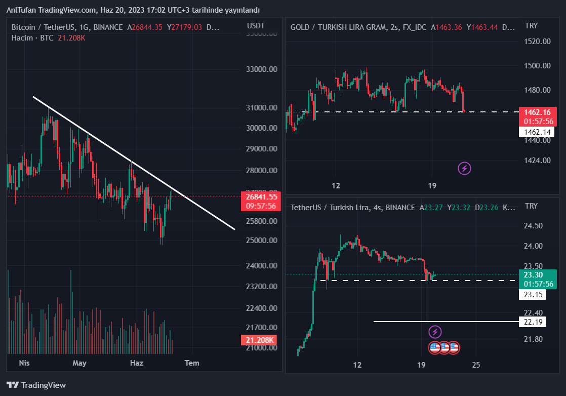Son süreçte ABD dolarının Türk lirası karşısında düşüş yaşaması, gram altına da sirayet etti. Şuan itibariyle ABD doları 23.15 TL seviyelerinde yer alan desteğinde tutunmuş gibi gözükmekte.