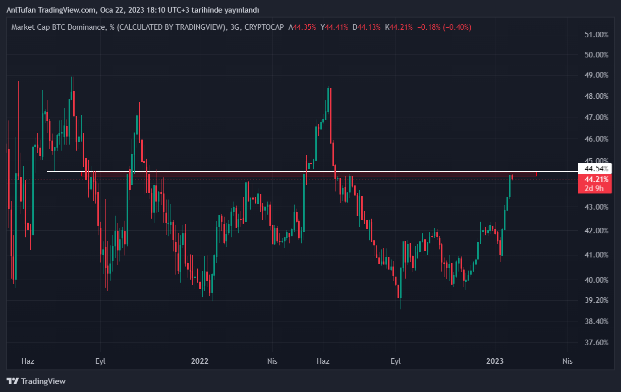 Altcoin rallisi için Bitcoin dominans tablosu düşüş yaşarken BTC’nin ise değer kaybetmemesi gerekiyor. Bitcoin’in 23 bin doların üzerinde kalması, kripto varlıkların bullish hareketler sergilemesini sağlıyor gibi gözükmekte.