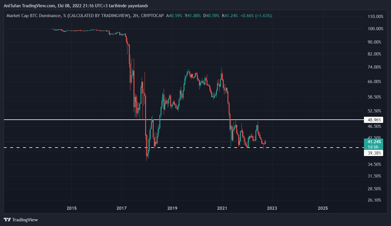 Bitcoin’in düşüş yaşadığı bir dönemde dominance tablosunun yüzde 50 direncini aşması, altcoin’lerin şuan bulundukları seviyeden yüzde 50 daha değer kaybetmesine neden olabilir.