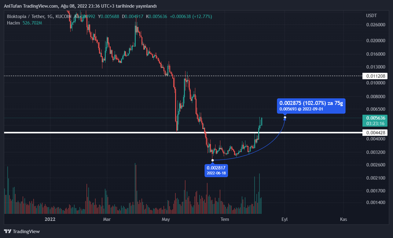 Haberimizin yazıldığı esnada 0.0056 dolar seviyelerinden işlem gören BLOK, sert bir şekilde yükselişlerine devam ediyor.