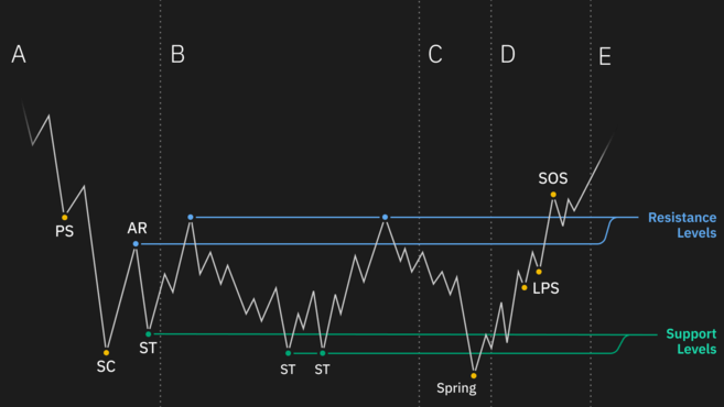 Stopların patlatılması ve yeni short işlemlerinin açılımıyla beraber piyasanın yukarı yönlü bir hareket yapacağını düşünen ünlü analist, Wyckoff’un birikim şemasında belirttiği gibi bir “Spring” hareketi bekliyor.