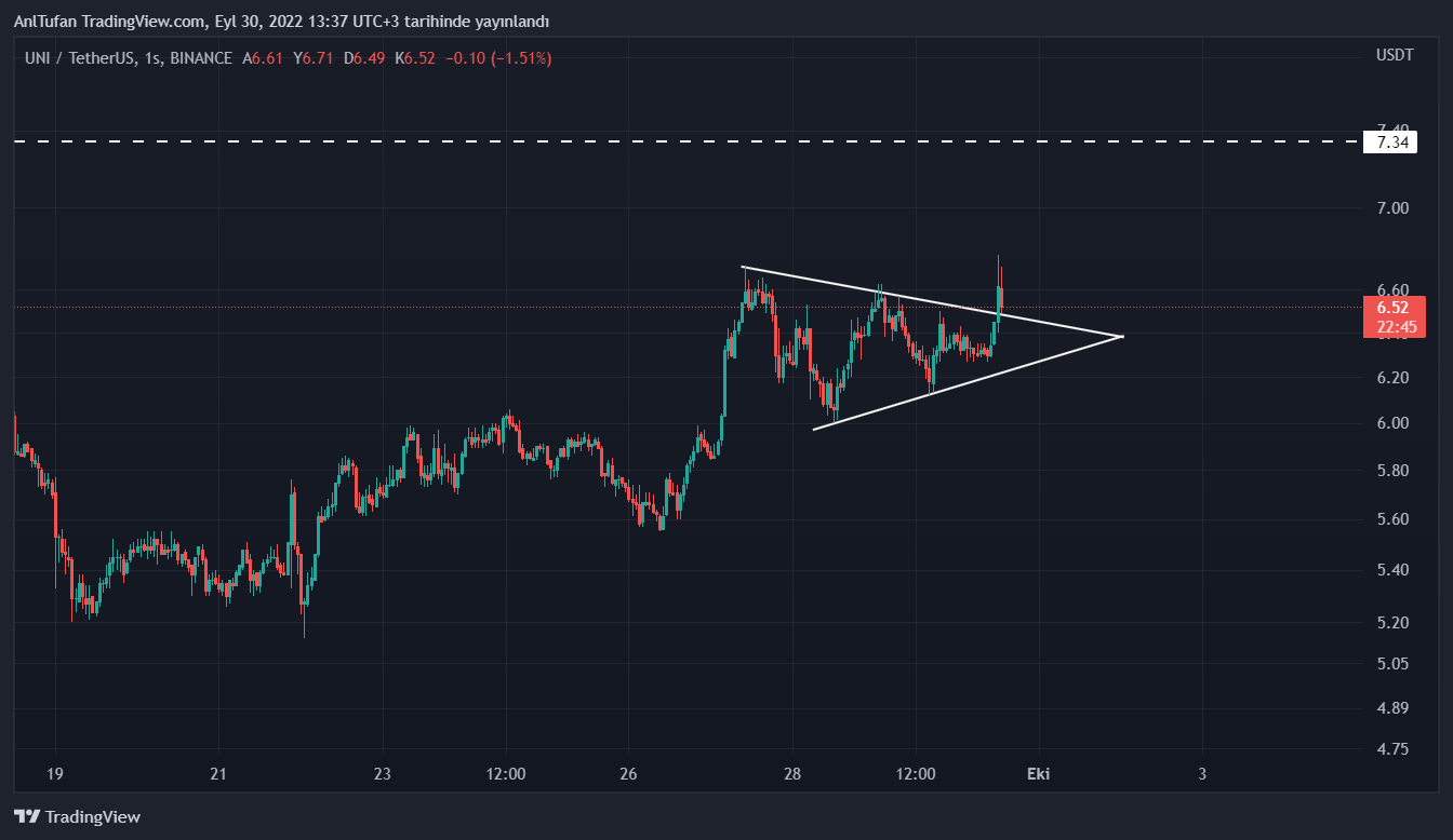 Bu fonun iddiadan ibaret olması UNI coin’in net bir yükseliş trendi başlatmasını engelliyor. Şuan itibariyle bir boğa flaması oluşturduğu görülen UNI, ilerleyen süreçte bu flamanın altına sarkmaması halinde 7.34 dolar seviyelerini hedefleyebilir.