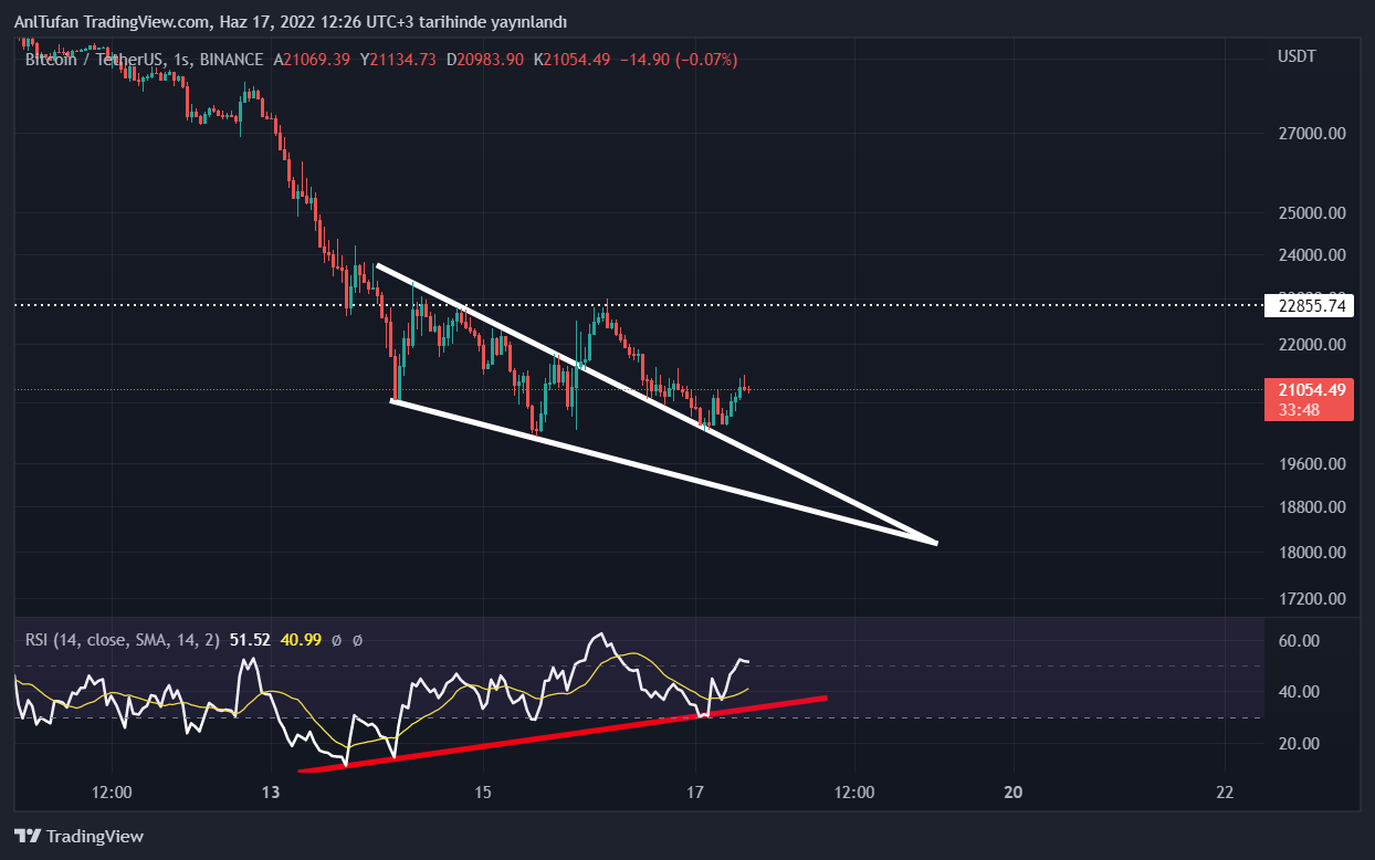 Geçtiğimiz dakikalarda 21.400 dolar noktasına ulaşmayı başaran BTC, bu seviyede oluşturduğu saatlik ayı mum formasyonu nedeniyle tekrardan düşüşe geçti