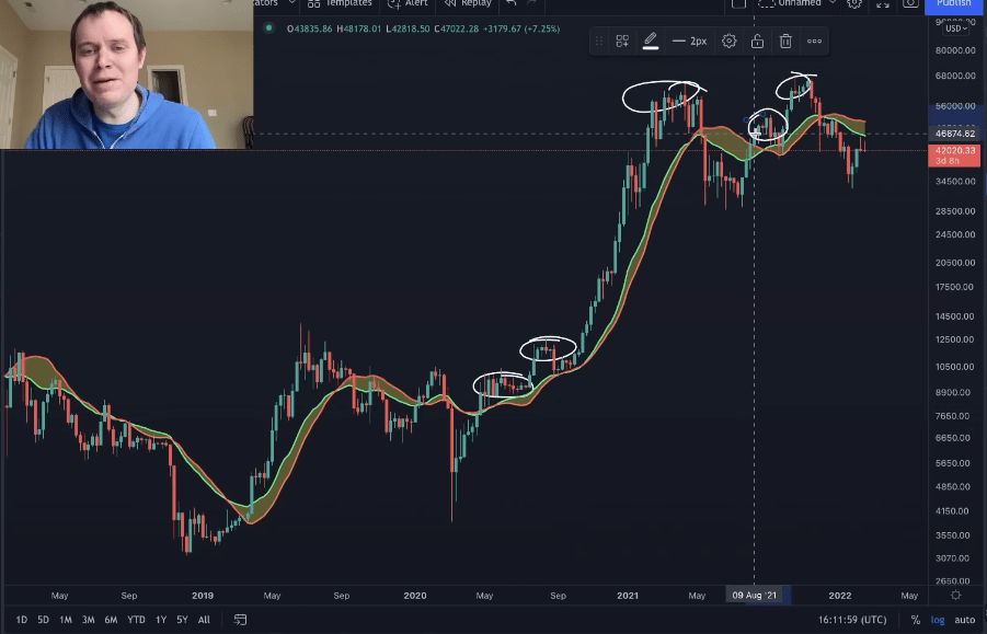 Yeni bir kripto para piyasasını değerlendirme oturumunda konuşan Benjamin Cowen, 712.000 YouToube abonesine Bitcoin analizini 2022 yılının 1. çeyreği için yaptığını ve kısa vadeli olarak değerlendirdiğini belirtiyor.