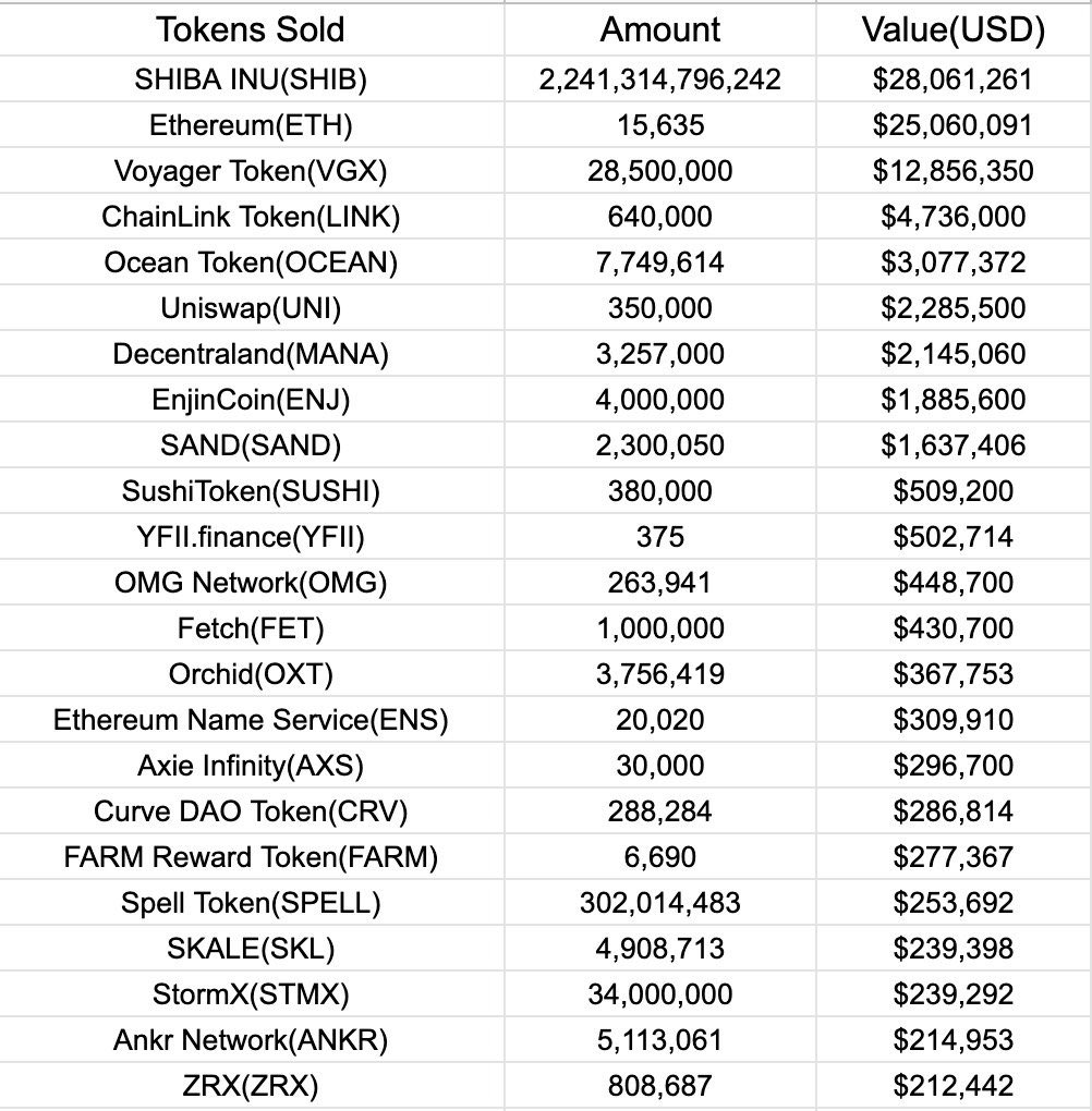 Voyager son haftalarda aşağıdaki listede yer alan altcoin’lerin satışlarını gerçekleştirmekte: