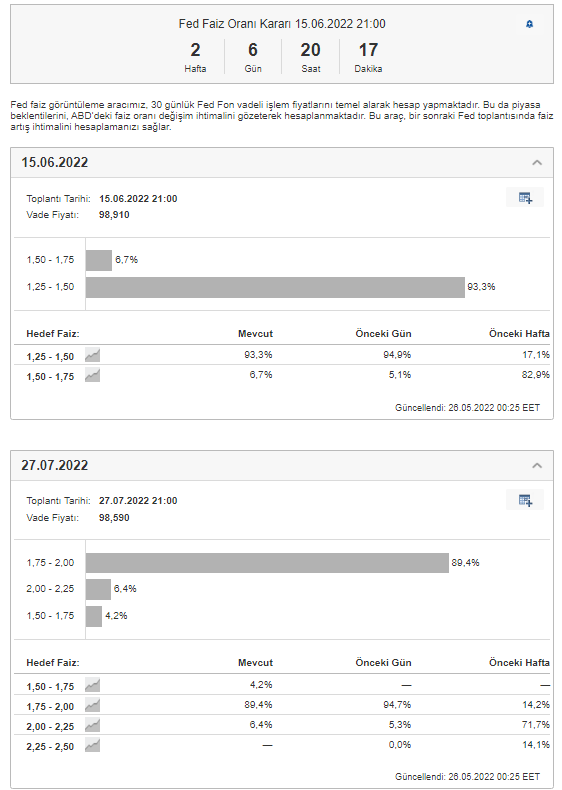 FED tutanaklarından öğrendiğimiz kadarıyla önümüzdeki 2 toplantıda da 50 baz puanlık faiz artışları gerçekleşebilir.