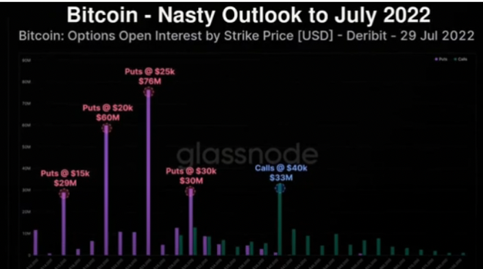BTC’ye yönelik 15.000 dolar odaklı 29 milyon dolarlık, 20.000 dolar odaklı 60 milyon dolarlık, 25.000 dolar odaklı 76 milyon dolarlık opsiyon kontratı bulunmakta. Analist ise bunun oldukça negatif olduğunu ifade etti.