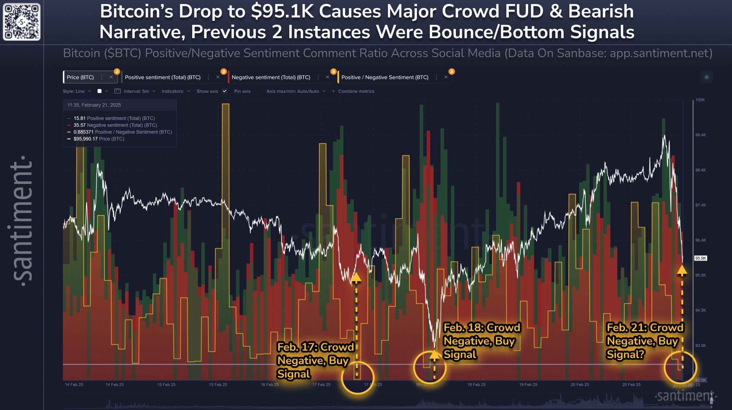 - Duyarlılık skorlarına göre, kripto topluluğundaki olumsuzluk seviyesi, fiyatların yükselmeden hemen önceki 17 ve 18 Şubat tarihlerindeki düşüş dönemine benzer seviyelere geriledi.