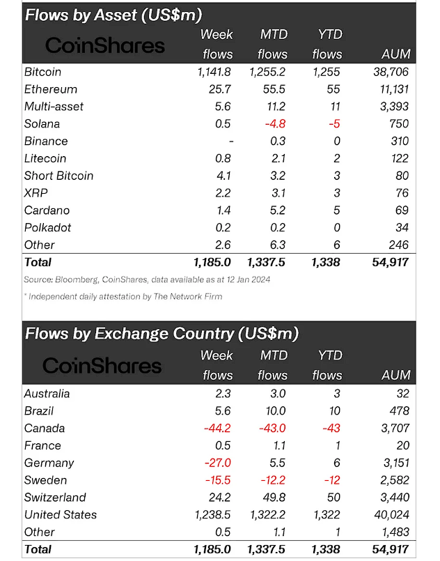 Başarılı bir araştırma şirketi olan CoinShares geçtiğimiz haftanın fon raporlarını açıkladı. Bu raporlara göre Bitcoin’e toplamda 1.14 milyar dolarlık bir fon girişi gerçekleşti.