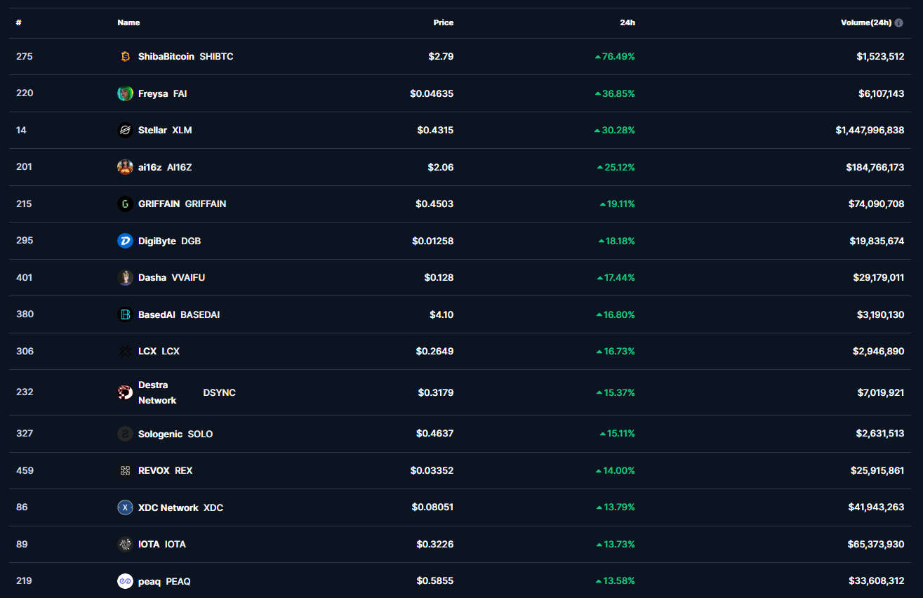 Hadi gelin bugünün en çok yükselen altcoin’lerine yakından göz atalım:
