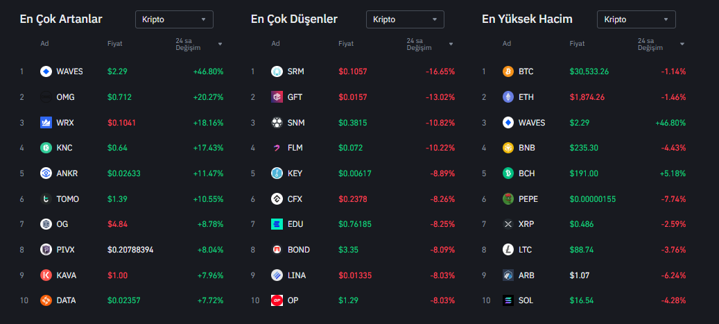 Bugün itibariyle Wawes, OMG ve WRX gibi altcoin’ler, yaşadığı yükselişler ile dikkat çekti. Bu ürünlerin Bitcoin’den ve genel altcoin piyasasından ayrıştığı gözlemlendi.