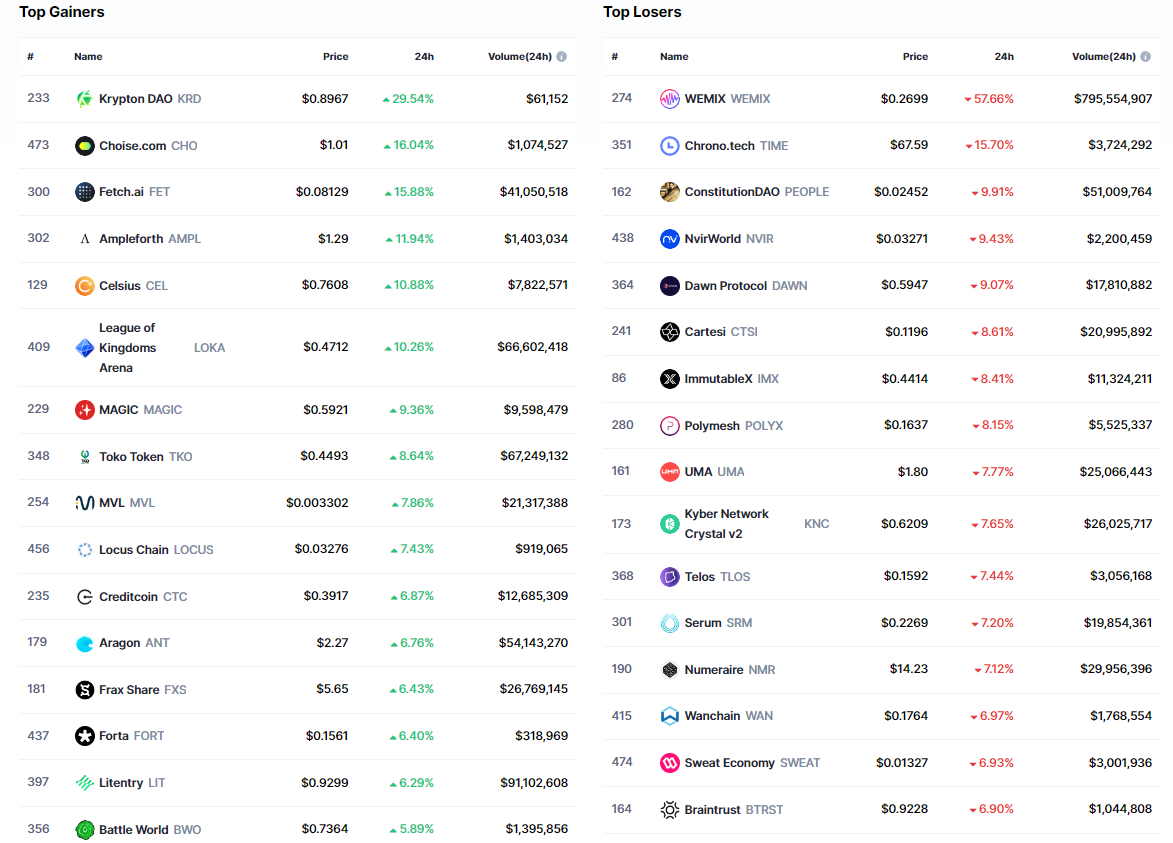 CoinMarketCap’in aktardıklarına göre, aşağıda yer alan altcoin’ler bugün özelinde yüzde 10’dan fazla yükseliş yaşamayı başardı: