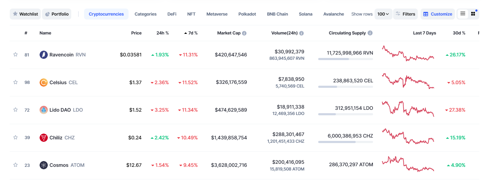Başarılı bir veri sağlayıcısı olan CoinMarketCap’in aktardıklarına göre, aşağıda yer alan 5 altcoin ilk 100 kripto para birimi içerisinde bu hafta en sert yükselişleri yaşamayı başardı: