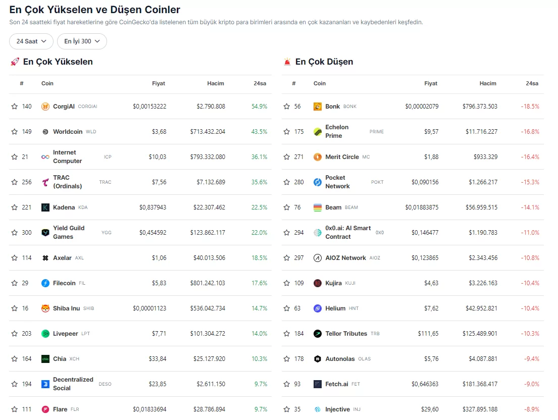 İşte bugünün en çok artış ve düşüş yaşayan altcoin’leri: