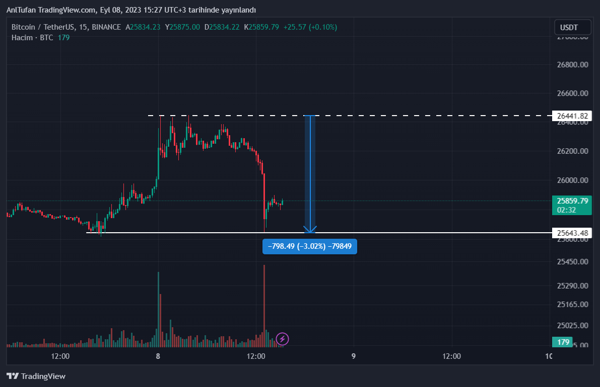 Bitcoin (BTC) son yaşadığı düşüşler ile birlikte 25.600 doları gördü. BTC haberimizin yazıldığı esnada ise 25.850 dolar seviyelerinden işlem görüyor.
