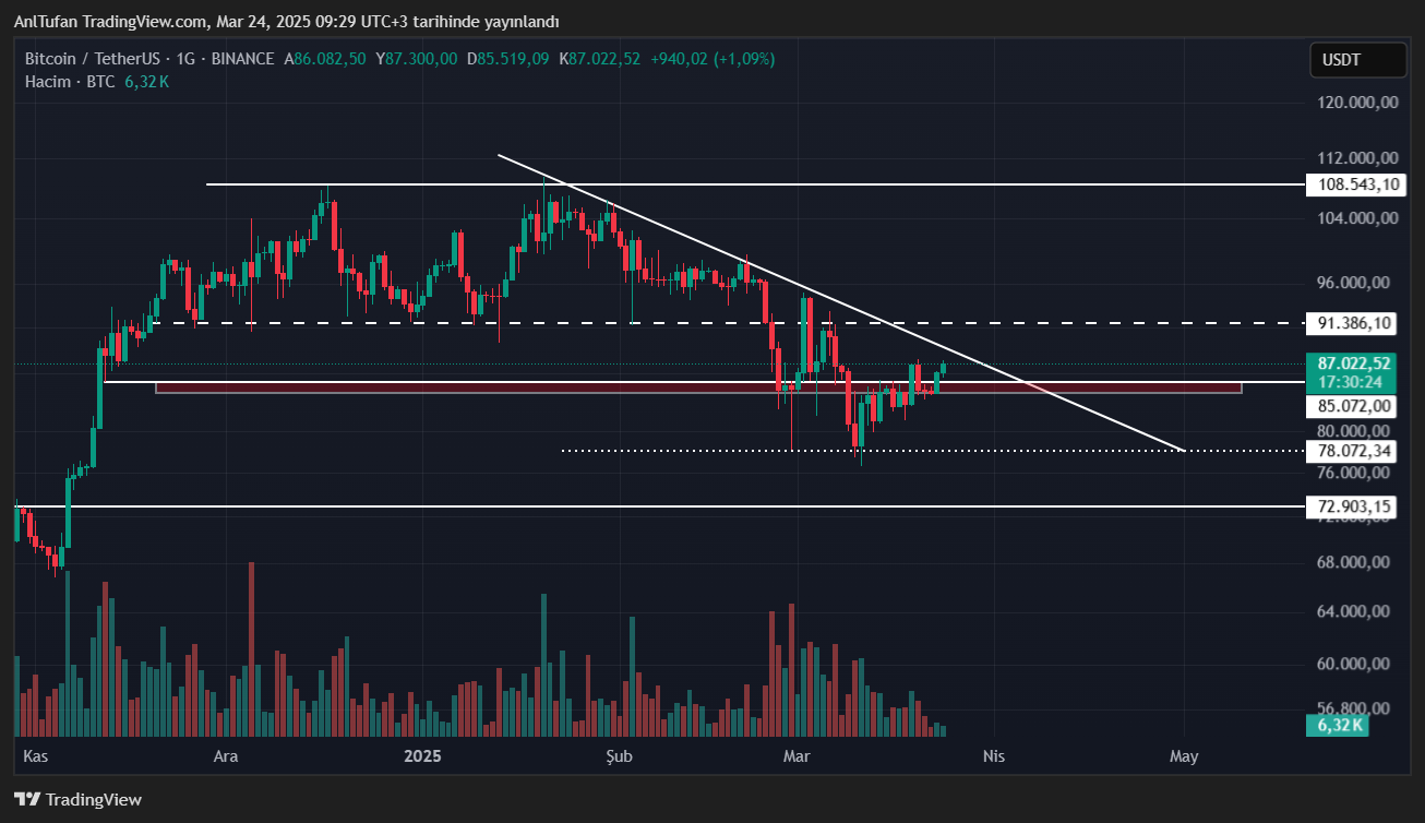 Bitcoin yeni haftanın ilk günü 87 bin dolar seviyesini aşmayı başardı. 84 bin – 85 bin dolar desteğinde tutunan BTC, yeniden yukarı yönlü hareketler sergiliyor.