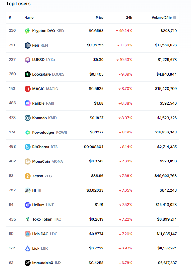 Başarılı bir sağlayıcısı olan CoinMarketCap’in aktardıklarına göre, son 24 saat içerisinde altcoin’ler ortalama yüzde 5 oranında düşüş yaşadı.