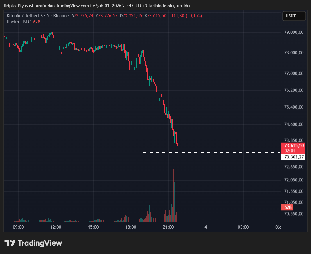 Kripto para sektöründe kötü günler devam ediyor. Şubat ayına da berbat bir başlangıç yapan lider kripto para birimi Bitcoin (BTC), her geçen gün daha büyük düşüşler yaşıyor. BTC son yaşanan düşüşler ile birlikte 73 bin dolar bandına kadar geriledi.