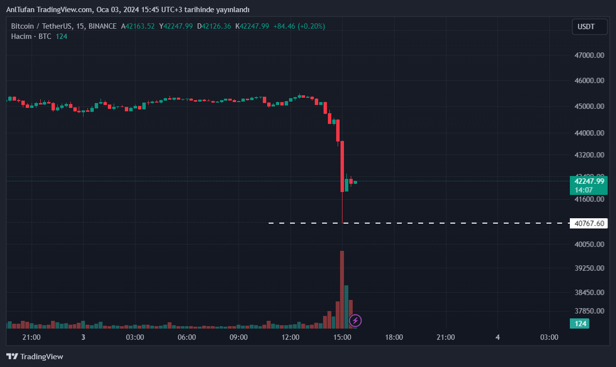 Bitcoin dakikaların ilerlemesiyle birlikte 40.750 dolar seviyelerine kadar bir düşüş yaşadı. 40.750 dolardan tepki almayı başaran BTC yeniden 42 bin doların üzerine çıkmış durumda.