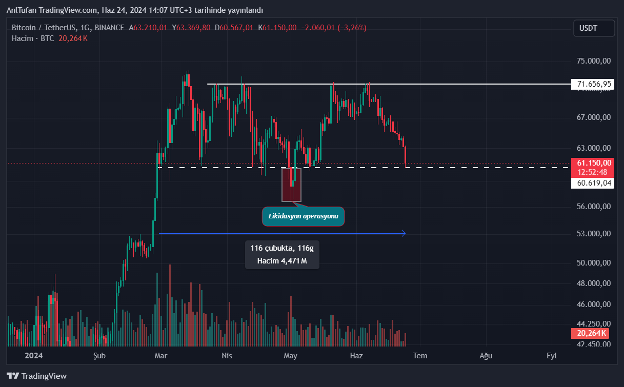 İlerleyen dönemde Bitcoin her ne kadar 60.500 doların hatta 60 bin doların altına iğneler atabilecek olsa da, düşüş trendinin bu destek bölgesinde son bulması olası gözüküyor.