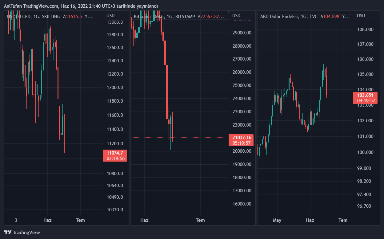 Faiz artışların sonrasında ABD dolar endeksinin düşüş yaşaması yatırımcıların dikkatini çekerken, ABD borsalarının ve Bitcoin‘in de değer kaybetmesi büyük bir şaşkınlığın oluşmasına neden olduğu görülüyor.