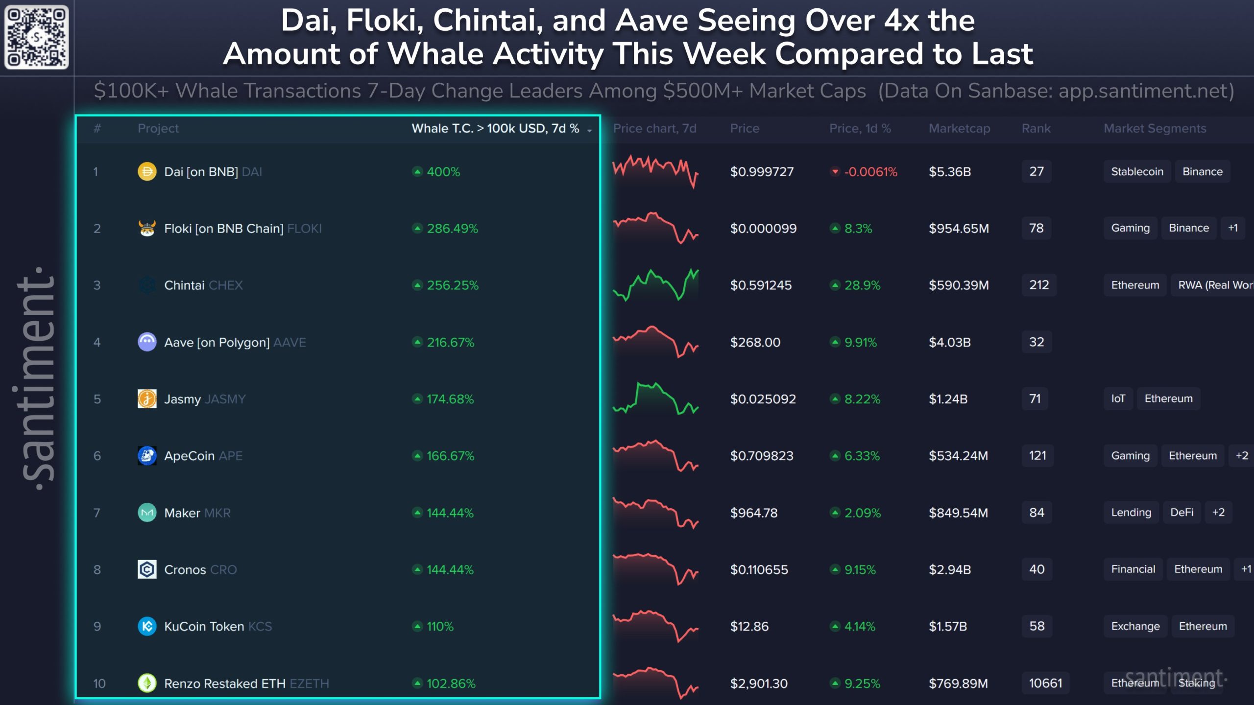 Bu hafta balina aktivitesinde en yüksek artışı gören varlıklar şunlardır: