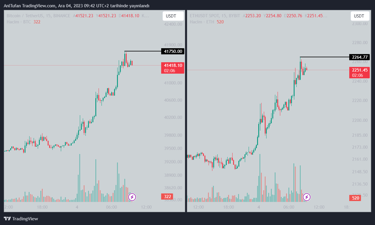 Şimdilik Bitcoin 41.750 dolarda ufak bir reddedilme yaşamış olsa da, bu seviyenin kırılımı 45 bin dolara kadar bir yükseliş getirebilir.