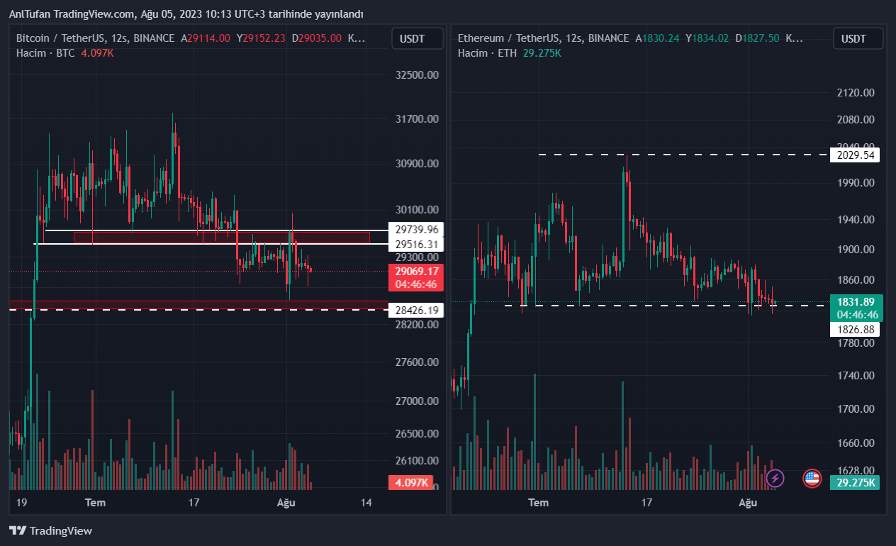 Lider altcoin Ethereum‘un (ETH) son durumuna baktığımızda, Bitcoin’den çok daha bullish olduğu net bir şekilde görülüyor. BTC her ne kadar 30 bin dolar desteğini kaybetse de, ETH 1.825 dolar desteğinde tutunuyor.
