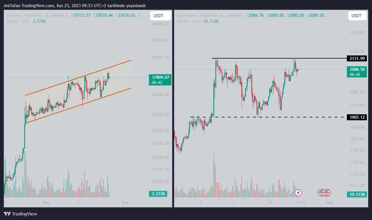 Lider altcoin Ethereum’un (ETH) son durumuna baktığımızda bir süredir 1.900 – 2.150 dolar aralığında akümüle olduğu görülüyor.