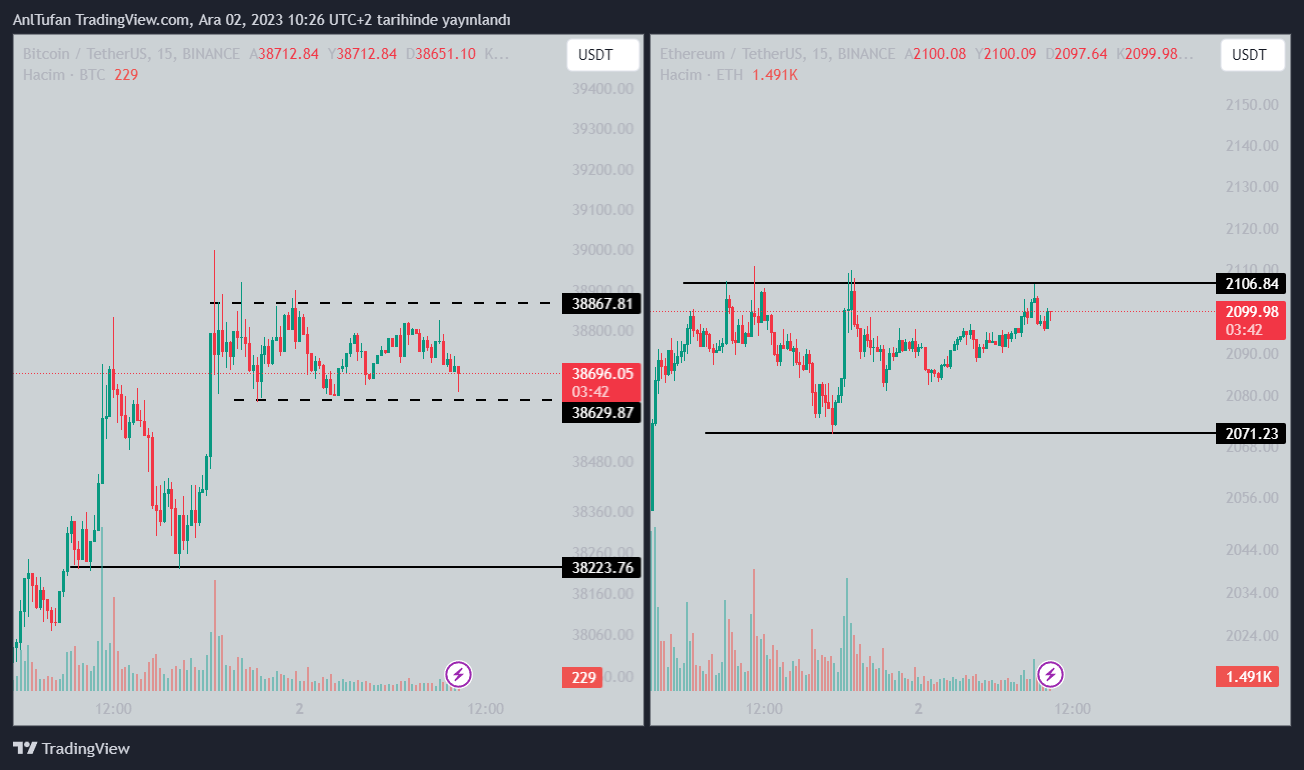 Bitcoin’in son durumuna baktığımızda 38.600 – 38.900 dolar aralığında sıkıştığı gözlenmekte. Bir süredir bu seviyelerde yatay giden BTC, halen bir kırılım gerçekleştirmedi.