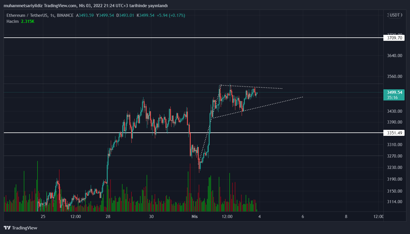 Haberimizin yazıldığı esnada 3500 dolar seviyelerinde bulunan lider altcoin, bullish flag formasyonu oluşturmuş durumda.