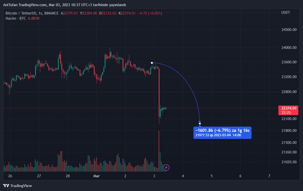 Şuan itibariyle lider kripto para birimi Bitcoin’e (BTC) baktığımızda 22.350 dolar seviyelerinden işlem görmesi dikkat çekiyor. İlerleyen saatlerde düşüşlerin hızlanması, BTC’nin 21.700 dolar seviyelerine gerilemesine neden olabilir.